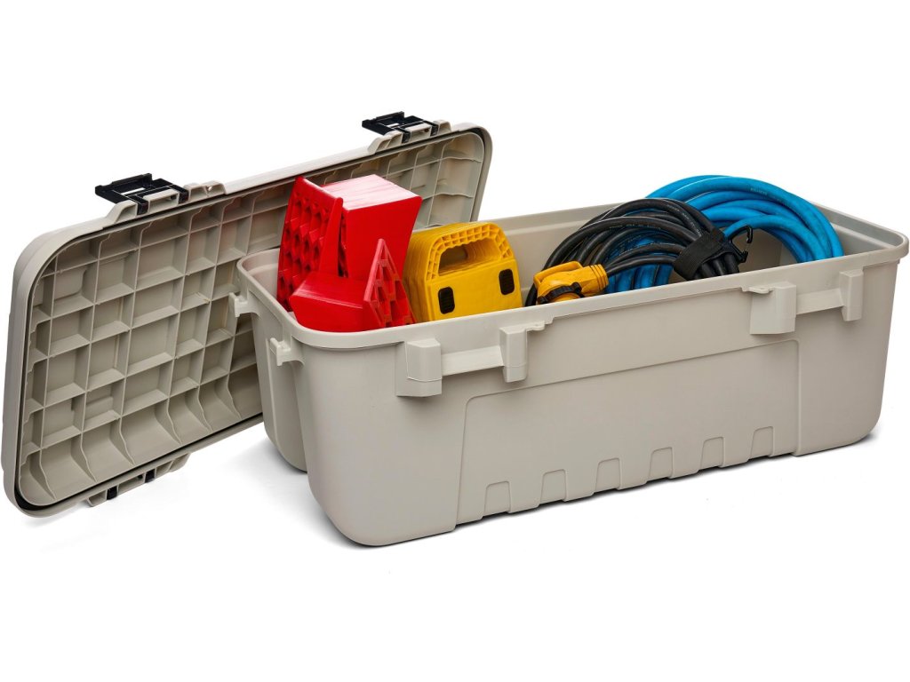 Univerzální přepravní, úložní, stohovatelný box Sportman´s Trunk na cokoli. Díky odnímatelnému víku s kvalitním uzavíracím systémem lze do něj uložit vše od maličkostí, přes oblečení, krmení, atd.