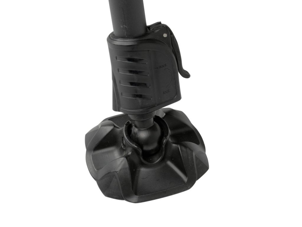 Lehátko má 8 plně nastavitelných nohou s otočnými patkami pro rovnoměrné rozložení zátěže, silný rám s plně plochým profilem a vodováhou pro dokonalé vyrovnání i na nerovných terénech a svazích.