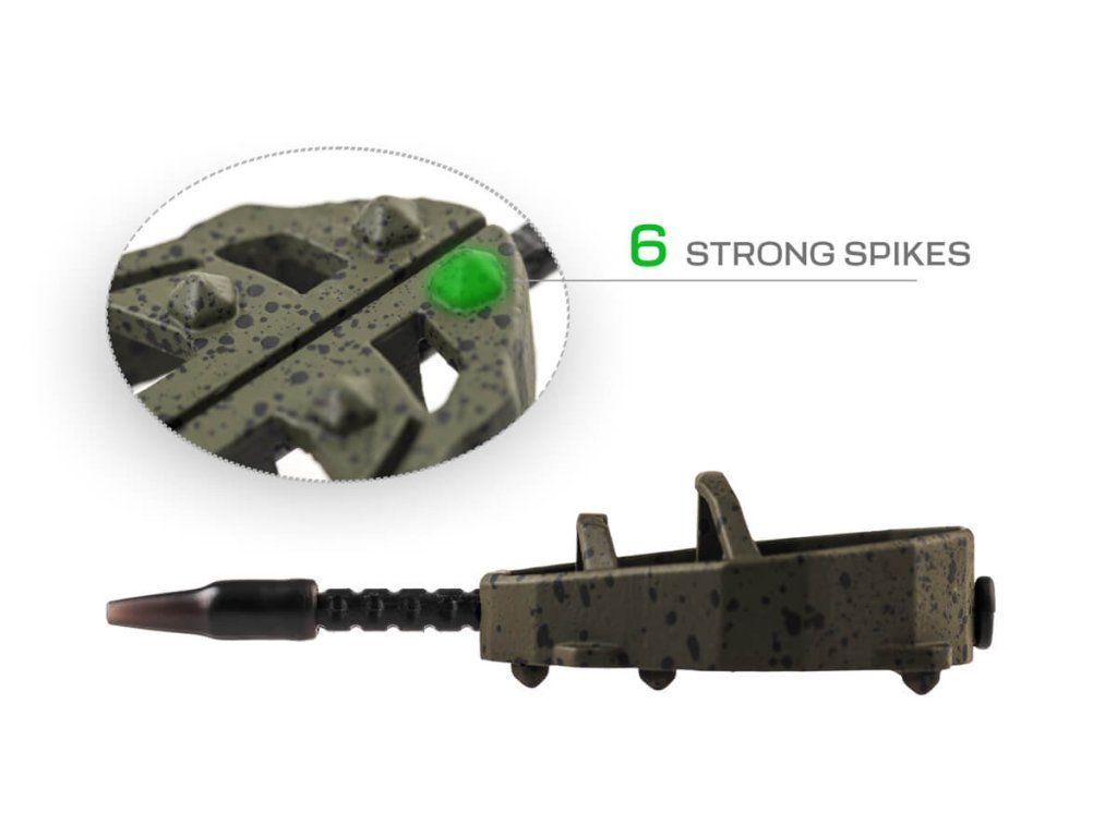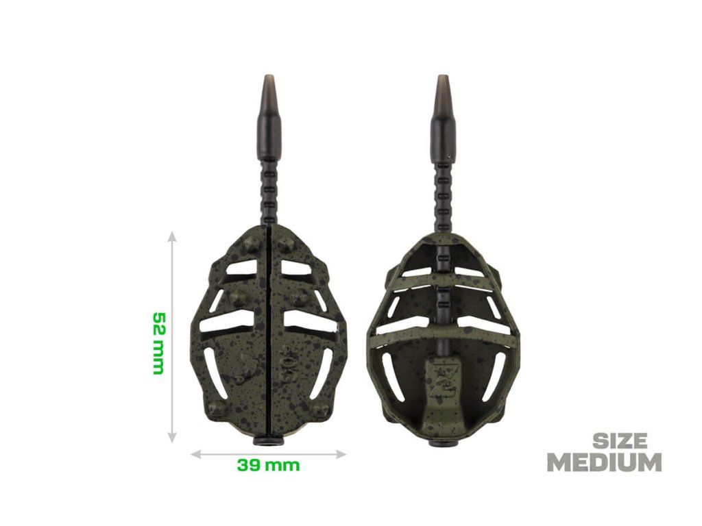 Krmítko Spider představuje novou generaci method feeder krmítek, která spojuje precizní zpracování, promyšlený design a maximální funkčnost. Na jejich vývoji se podílel tým zkušených specialistů značky ZFISH, díky čemuž vzniklo krmítko, které splňuje i ta nejvyšší očekávání moderního rybáře. Tvar Spidera zaručuje dokonalé vyvážení při nahazování a jisté dosednutí ke dnu vždy tou správnou stranou. Nově navržený nosný rám zajišťuje optimální uvolňování krmné směsi a zároveň chrání nástrahu během náhozu. Součástí konstrukce je speciální ploška pro přesné umístění nástrahy s háčkem, která zajistí, že vaše nástraha bude vždy v ideální pozici. Krmítka Spider umožňují rychlou výměnu zátěže díky vyjímatelné trubičce a otvoru na zadní straně. Stačí vysunout trubičku, uvolnit vlasec a vyměnit zátěž za jinou – bez nutnosti převazování celé sestavy. Krmítka jsou vyrobena z bezolovnatého materiálu v matně zeleném provedení s černými tečkami, které dokonale splyne s dnem a minimalizuje plašení ryb.