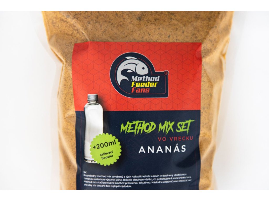Příchuť ananas je složena z více druhů kukuřičných složek, mletých sladkých a čokoládových sušenek, nadrobno umleté ??anglické vločky. Je to přesně ten method mix, který máte po navlhčení chuť sníst. Jeho příjemná sladká vůně a výrazná žlutá barva láká ryby zejména během hlavní sezóny, tzn. od dubna do října. Mají ho v oblibě větší cejni, kapři a osvědčil se i při lovu amurů.