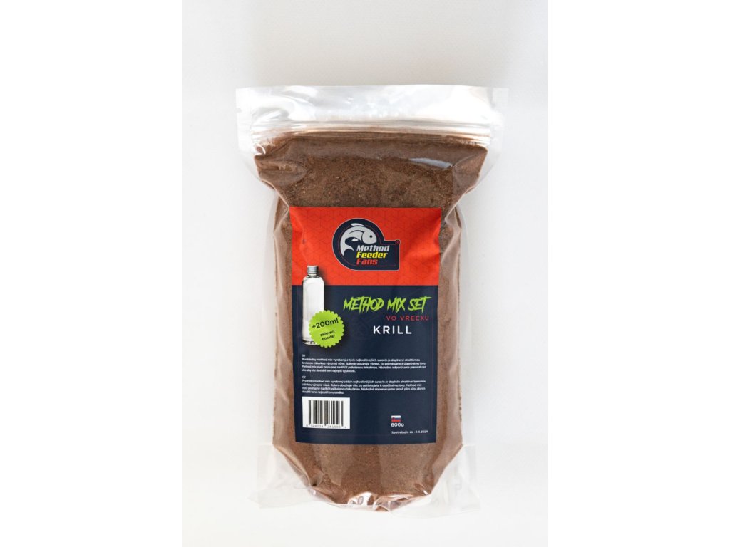 Příchuť krill je typická svojí hnědou barvou. Toto krmivo je sestaveno pro lov větších ryb. Jeho zvláštní „smradlavá“ vůně působí selektivně na větší ryby. Výborně funguje v teplé i ve studené vodě. Je složen z kvalitních rybích mouček, jemně umletých halibut pelet, sardinkové moučky, lněného semene a kukuřičných komponentů. Právě na tento method mix jsme nachytali největší ryby po celou sezónu.
