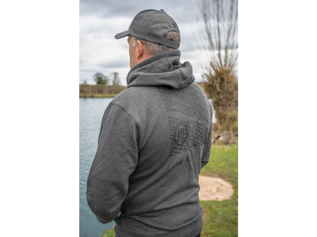 Mikina se zipem v šedé barvě s pogumovaným potiskem vpředu a velkým pogumovaným potiskem vzadu. Vysoce kvalitní YKK zip. Vyrobeno z 80%bavlny, 20% polyesteru