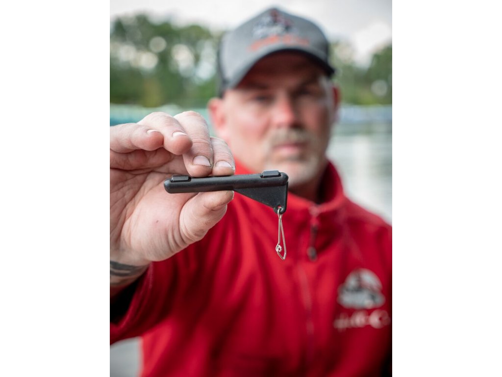 Tento závěsek, lze kdykoli sundat a není nutné řezat montáž. Závěsek slouží pro připnutí olova nebo jiné zátěže, která může být buď pevná, nebo trhací. Závěsek je vyrobený z pevného materiálu, který je opatřen silnou karabinou. Popis : Barva : černá Balení : 2ks Materiál : Tvrzený plastDoplňkové parametry