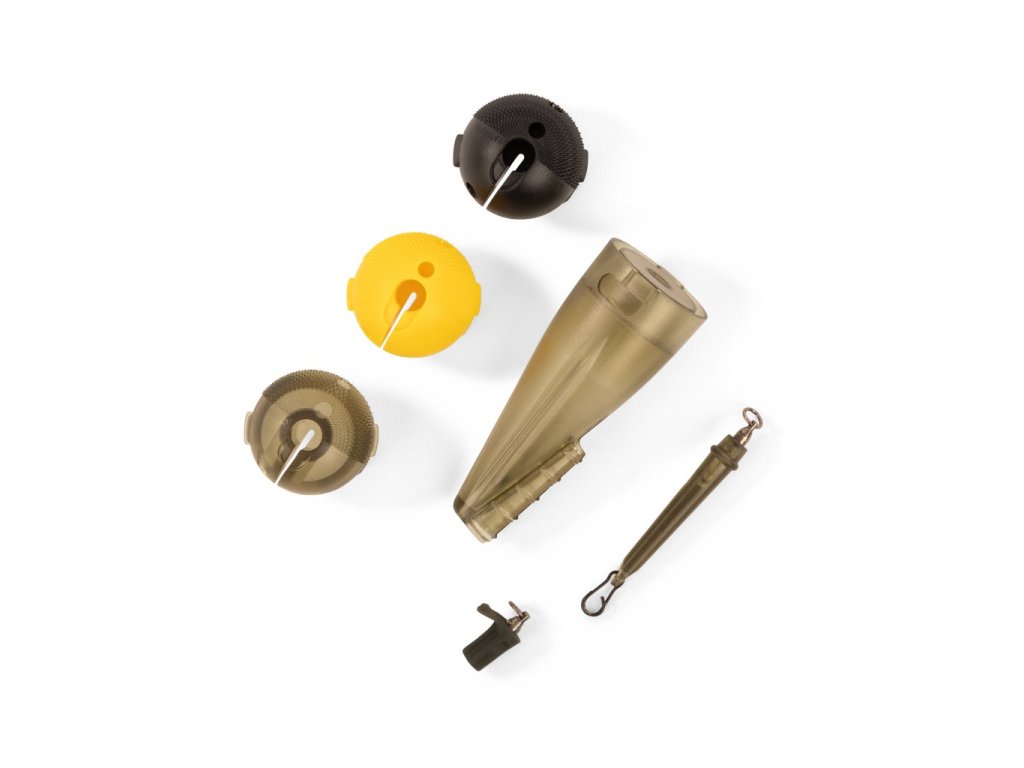 Obsah balení: 1× plovák, 1× dřík pro upevnění olova s ložiskovým obratlíkem, 1× zátka s ložiskovým obratlíkem, 3× uzavírací čepička (zelená – průsvitná, černá a svítivě žlutá) a 1× rychlovýměnná karabinka.