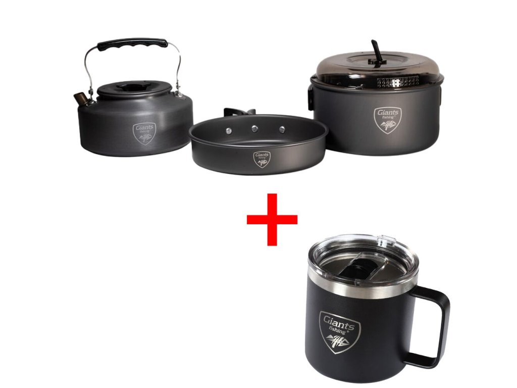 Giants fishing Akční set Sada nádobí s konvičkou + Nerezový thermo hrnek 400ml