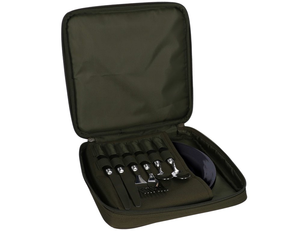 Základní jídelní set pro dva. Sada obsahuje dva talíře, příbory (dva nože, dvě vidličky, dvě lžíce) a dobře vypadající pouzdro. Vynikající volba pro jakýkoli rybářský výlet.Doplňkové parametry
