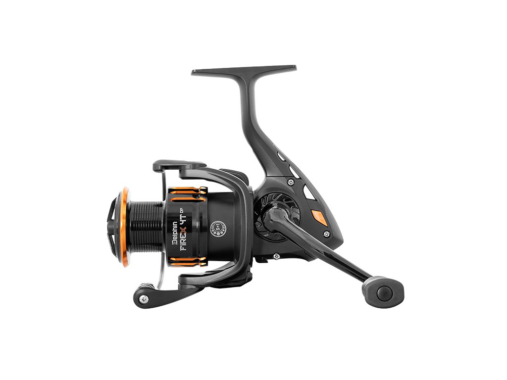 Univerzální naviják nabízející vynikající výkon a vlastnosti v porovnání s jinými navijáky ve stejné cenové třídě. Převodový poměr 5.1:1 při velikostech 2T a 3T, resp. 5.5:1 při velikostech 4T, 5T a 6T zajišťuje optimální návin na jedno otočení, což oceníte při stahování montáží nebo vedení nástrahy při přívlači. O hladký a trvanlivý chod se postará soustava až 6 kvalitních kuličkových ložisek (5+1). Černá kovová cívka s efektními oranžovými výřezy a linií na přední hraně je dostatečně hluboká a tedy pojme potřebné množství vlasce pro různé rybolovné techniky. FireX disponuje citlivou přední brzdou, tedy budete mít zdolávání pod kontrolou a ve vašem podběráku skončí nejedna pěkná ryba. Kovová klika je ukončena ergonomicky tvarovanou gumovou rukojetí, která se příjemně drží v ruce a zvládnete s ní i celodenní vycházky k vodě bez jakýchkoli problémů. Naviják je laděn do matné černé barvy se stylovými výřezy a výraznými oranžovými doplňky, což z něj činí zajímavý kousek a rozhodně zkrášlí sestavu nejednoho rybáře. Technické parametry: Naviják Delphin FireX 2T DP Kapacita cívky mm/m: 0.18/240m, 0.20/200m, 0.22/160m Převodový poměr: 5.1:1 Počet ložisek: 5+1 Hmotnost: 246g Naviják Delphin FireX 3T DP Kapacita cívky mm/m: 0.20/310m, 0.22/250m, 0.25/200m Převodový poměr: 5.1:1 Počet ložisek: 5+1 Hmotnost: 260g Naviják Delphin FireX 4T DP Kapacita cívky mm/m: 0.22/430m, 0.25/330m, 0.28/270m Převodový poměr: 5.5:1 Počet ložisek: 5+1 Hmotnost: 343g Naviják Delphin FireX 5T DP Kapacita cívky mm/m: 0.25/490m, 0.28/390m, 0.30/340m Převodový poměr: 5.5:1 Počet ložisek: 5+1 Hmotnost: 373g Naviják Delphin FireX 6T DP Kapacita cívky mm/m: 0.28/520m, 0.30/450m, 0.32/400m Převodový poměr: 5.5:1 Počet ložisek: 5+1 Hmotnost: 413gDoplňkové parametry