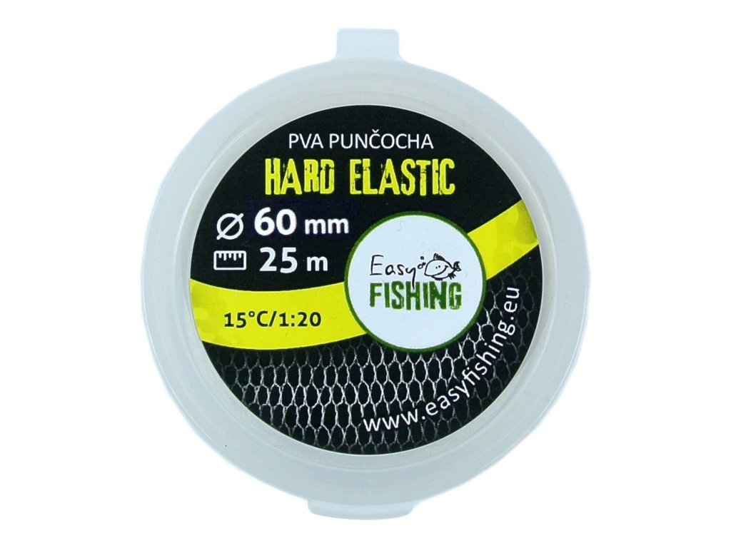 Náhradní balení PVA punčochy HARD ELASTIC o průměru 25 mm a délce 25 metrů. Univerzální, vhodná jak pro lehké, tak těžké návnady. Určeno pro studenou i teplou vodu. HARD ELASTIC jsou elastické, hrubší a pevnější PVA punčochy, speciálně vyráběné pro těžké i lehké návnady a dlouhý nához. Snesou vysoké mechanické namáhání. Punčochy jsou vyrobené z kvalitního japonského materiálu.Doplňkové parametry