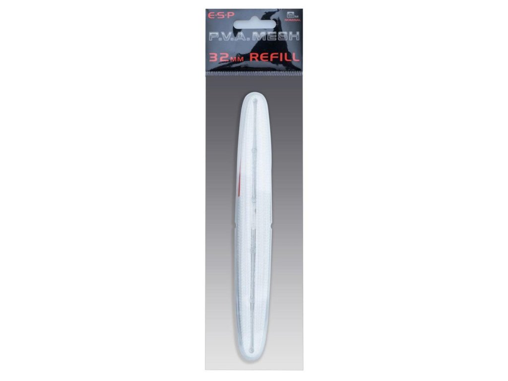 PVA punčocha – náhradní náplň Kvalitní náhradní PVA punčocha o délce 6 metrů. Dostupné průměry Tato náhradní náplň je kompatibilní s různými průměry PVA tubusů: PVA Mesh Refil 20 mm a 25 mm: Vhodná pro tubusy s průměrem 20 mm a 25 mm. PVA Mesh Refil 32 mm: Vhodná pro tubusy s průměrem 32 mm.Doplňkové parametry