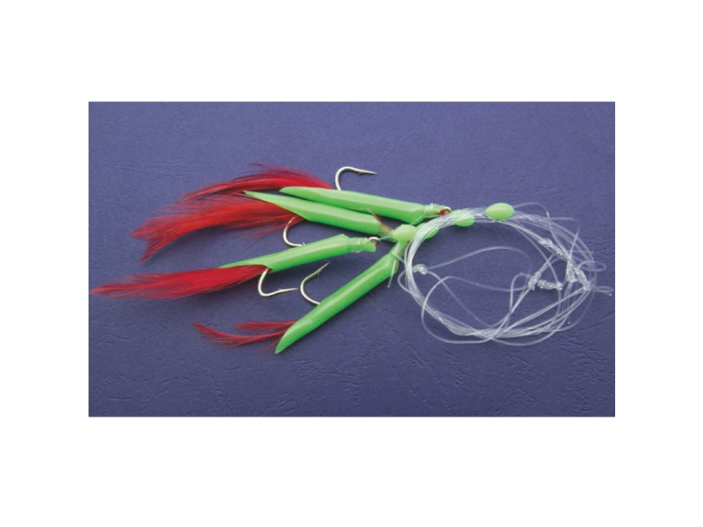 Treskové systémy jsou osazeny třemi nebo čtyřmi háčky podle konkrétního vzoru. Vlasec má průměr 0,6 mm nebo 0,7 mm. Přívěsky svým vzhledem připomínají přirozenou potravu tresky, jsou k dispozici v různých barvách a provedeních. Každý přívěsek je doplněn o zelené korálky.