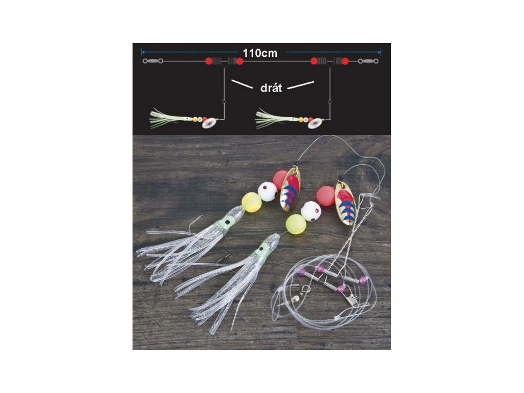 Návazcová souprava. Má dva háčky, které jsou od hl. návazcové šňůry odděleny vloženým drátem proti zamotání. Háčky jsou opatřeny fluorescenční imitací chobotnice a nad nimi jsou umístěny fluorescenční korálky s třpytkou. Součástí balení je EVA Board - pěnová deska na návazce.