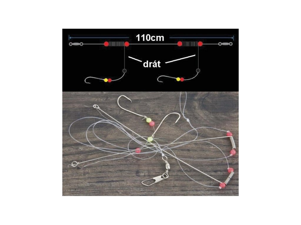 Hlavní vlasec je osazen dvěma háčky, jsou umístěny na ocelovém rameni, které dovoluje nástraze rotovat okolo vlasce bez zamotání. Součástí balení je EVA Board - pěnová deska na návazce.
