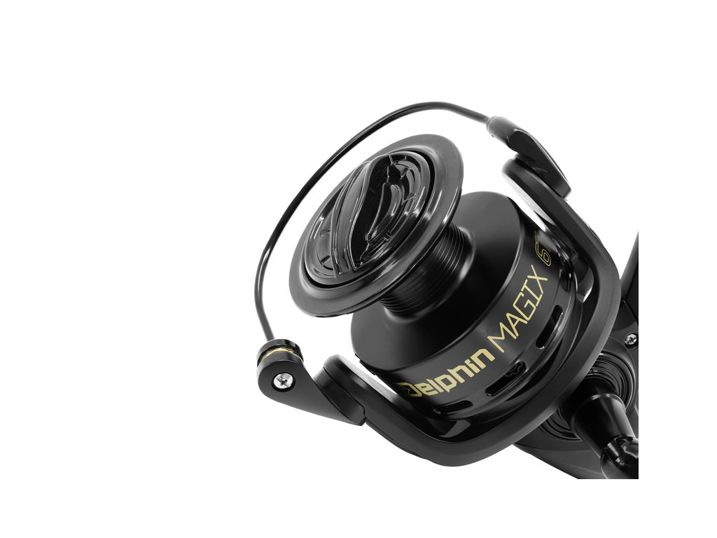 Excelentní naviják v dané cenové kategorii, který ve své třídě vyniká hladkým chodem a velmi citlivou přední brzdou, umožňující naprosto přesné dávkování síly během zdolávání. MAGIX ale upoutá už na první dojem svým mimořádně elegantním černým designem s decentní grafikou, čímž bude ladit s jakýmkoli prutem. Díky nabízeným velikostem se tento naviják ideálně hodí na kaprařinu, a to zejména při lovu na kratší vzdálenosti. Stejně dobře jej však lze využít při feederu. Vnitřní mechanismus je vybaven převodovým poměrem 5.5:1, který se stará o extra plynulý chod při zdolávání úlovku a zároveň umožní rychlé stažení montáže. Kromě toho naviják disponuje soustavou šesti (5+1) kuličkových ložisek a hřídelí vyrobenou z vysokopevnostní oceli. Právě použité materiály zajišťují dlouhou životnost a bezproblémovou funkčnost navijáku. Kovová klika je na konci vybavena efektním dřevěným madlem pro maximálně komfortní úchop a manipulaci během lovu. Model: Delphin MAGIX 5T Kapacita základní cívky mm/m: 0.28/370, 0.30/320, 0.32/280 Převodový poměr: 5.5:1 Počet ložisek: 5+1 Hmotnost: 393g Model: Delphin MAGIX 6T Kapacita základní cívky mm/m: 0.28/510, 0.30/440, 0.32/370 Převodový poměr: 5.5:1 Počet ložisek: 5+1 Hmotnost: 408gDoplňkové parametry