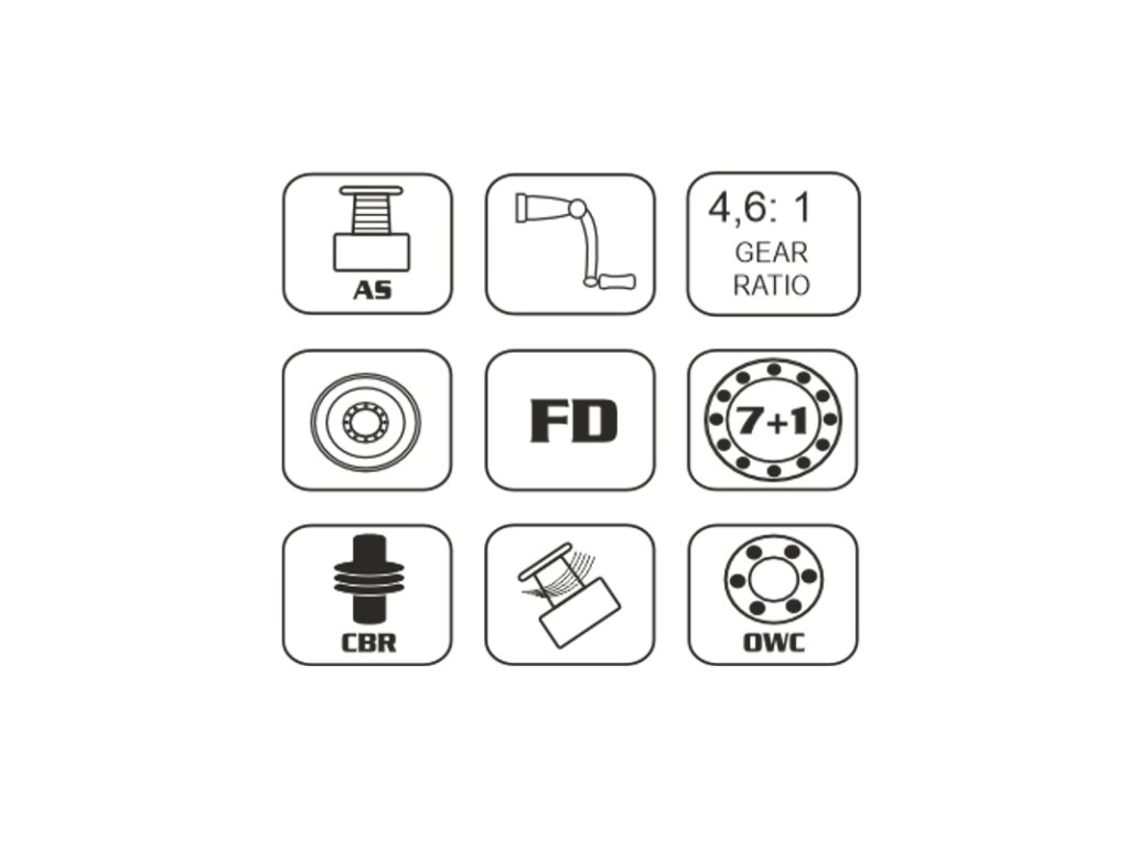 Přední brzda poskytuje jistotu během zdolávání ryby. Hlavní převody jsou vyrobeny z nerezové oceli, což zajišťuje dlouhou životnost i při intenzivním používání.