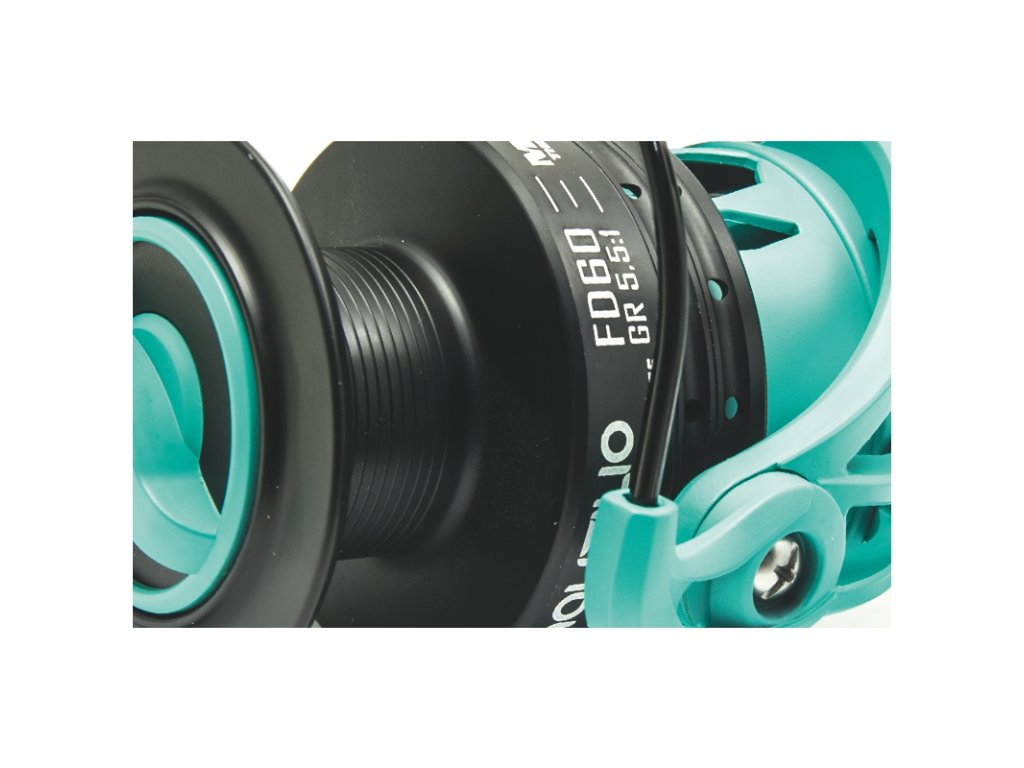 Precizně navržený naviják s velmi jemně nastavitelnou přední brzdou. Všechny komponenty jsou vyrobeny s maximální přesností z vysoce kvalitních materiálů. Výkonná převodovka, přesně sladěný systém navíjení vlasce, nerezové ramínko překlapěče, sedm ložisek a jednocestné ložisko pro hladký a plynulý chod. Balení obsahuje jednu hliníkovou cívku a jednu grafitovou náhradní cívku.