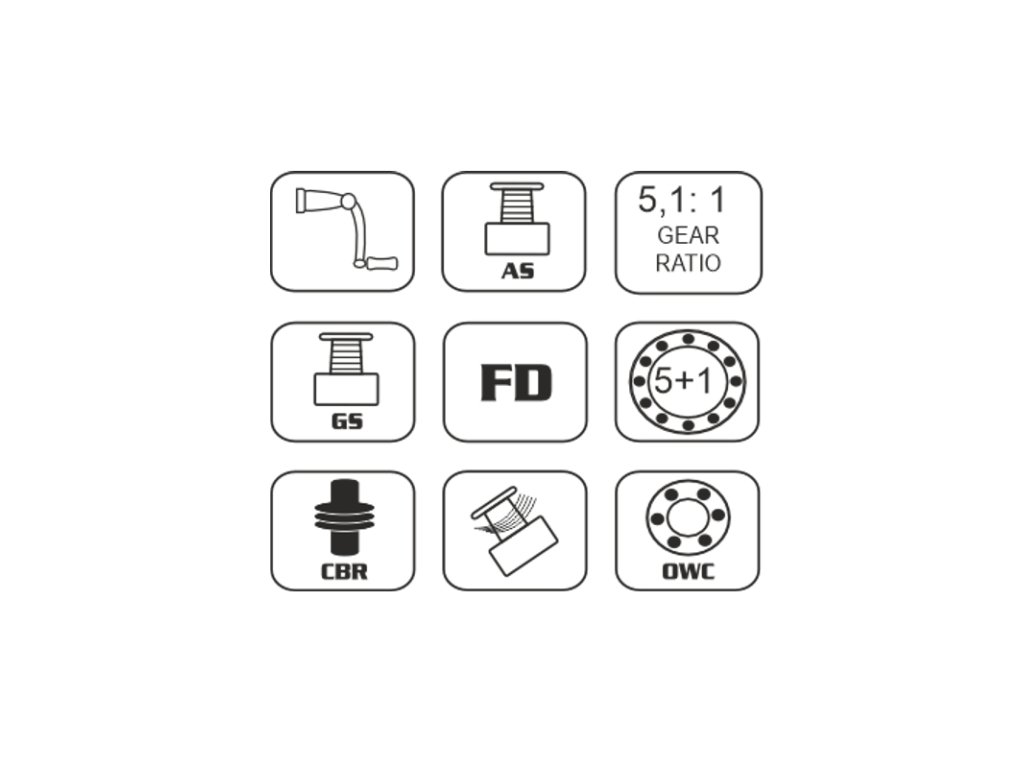 Naviják vybavený pěti kuličkovými ložisky a jedním jednocestným ložiskem. Díky preciznímu zpracování a vysoké kvalitě materiálů splní požadavky jak profesionálních, tak i začínajících rybářů. Přední brzda poskytuje plynulé a přesné nastavení odporu při zdolávání ryby, vyvážený rotor zajišťuje hladký chod. V balení dvě grafitové cívky.