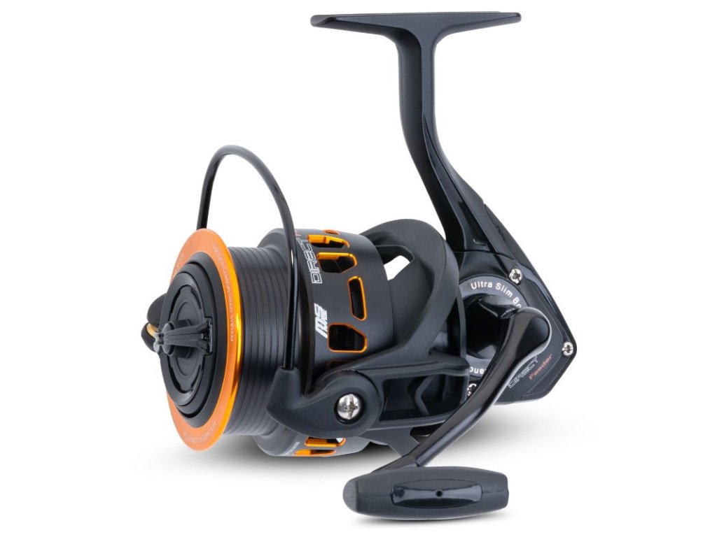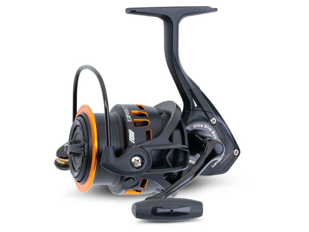 S Direct Feederem představujeme nový koncept pro dlouhé a přesné náhozy při lovu na feeder. Tělo navijáku je poměrně malé, rotor je naopak velký a je v něm uložena hliníková cívka s velkým průměrem. Tím je zajištěno, že vlasec při nahození snadno vyletí. Pokládání vlasce je také velmi rovnoměrné. Samozřejmostí je přesná brzda, která je velmi citlivá a chodí bez trhání.
