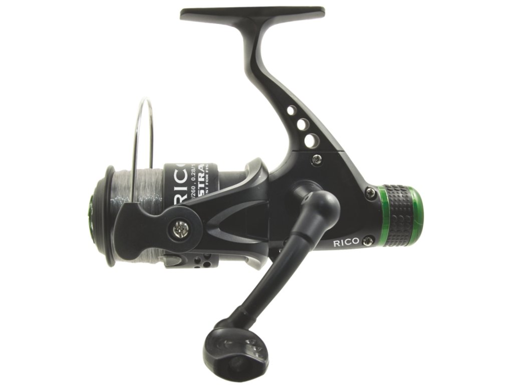 Model Rico 40 přináší stejnou výbavu jako menší verze, ale s větší cívkou a vyšší nosností. Vhodný pro rybáře, kteří preferují silnější vlasce nebo chytání větších ryb. Stejně jako model 30 je vybaven navinutým monofilem o průměru 0,22 mm.