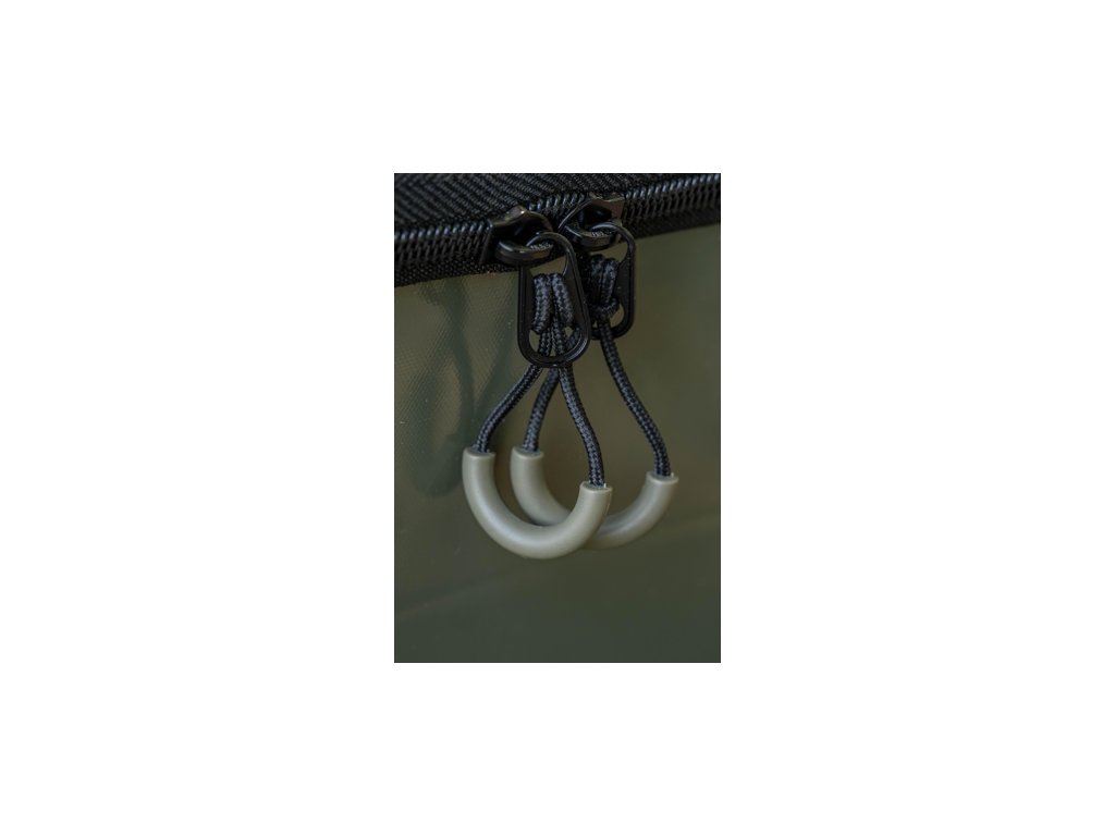 Dodává se se dvěma vnitřními přihrádkami, z nichž jedna má 3mm oka pro nasazování přírodních ryb a krmení. Ty lze během používání připnout na vnější stranu tašky, což vytváří velký pracovní prostor. Pod přihrádkami je dostatek místa pro vaničky s návnadami a další nástrahy. Dodává se s pohodlnými rukojeťmi pro přenášení a super odolným zipem.