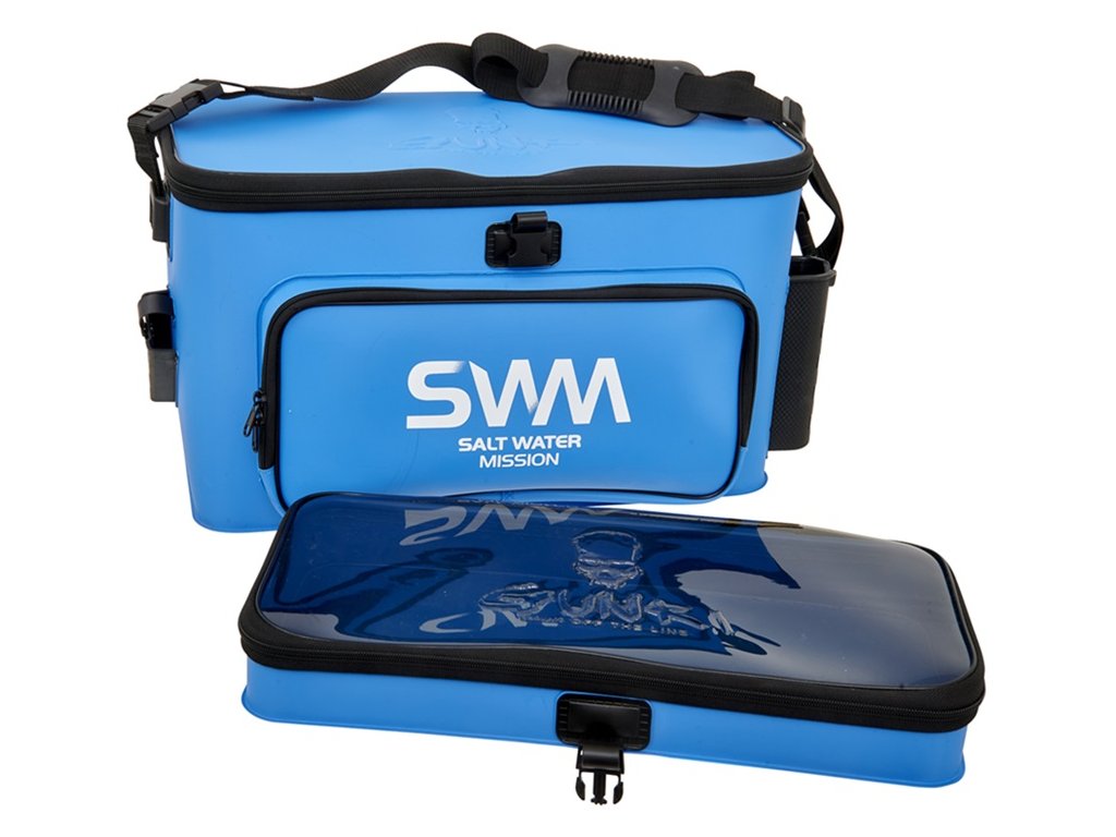 Nepromokavá taška GUNKI SWM (Salt Water Mission) z modelové řady BIG SPACE je navržená speciálně pro mořský rybolov na umělé nástrahy. Vyrobená je z kombinace 1,5 mm a 1 mm silného EVA materiálu, který je odolný a spolehlivě chrání výbavu před vlhkem. Unikátnost tohoto modelu spočívá v jeho dvoupatrovém uspořádání a velkém úložném prostoru Hlavní spodní komora slouží jako úložný prostor, který lze efektivně zorganizovat pomocí SAFE BAG PM/MM/GM/LID (prodávají se samostatně). Vrchní patro s průhledným víkem slouží jako pracovní plocha nebo přechodné místo pro odkládání nástrah, kleští či jiných pomůcek před jejich uložením do hlavní komory. Je pevně zajištěné klipy, takže zůstane stabilní i při plavbě na vlnách. K dispozici je celá řada snadno přístupných kapes pro uložení prutů, boxů, kleští nebo jiného potřebného vybavení. Odnímatelný ramenní popruh zajišťuje pohodlné přenášení a bezpečnost na lodi. Skvělá volba pro náročné rybáře, kteří si chtějí svou výbavu uchovat v perfektním stavu. Rozměry: taška 51,5×25×30,5 cm / horní box 49×22×6,5 cm.