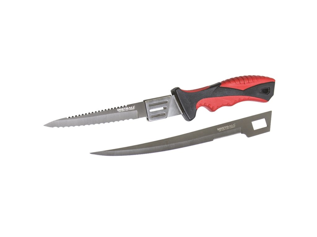 Filetovací nůž, na kterém si můžete ostří vyměnit přesně podle toho, co chcete se svým úlovkem udělat. Je zde klasická filetovací čepel, filetovací čepel s malou pilkou, kterou lze použít na malé kůstky a zubatá čepel pro zpracování jeseterů a přeřezání velkých kostí.
