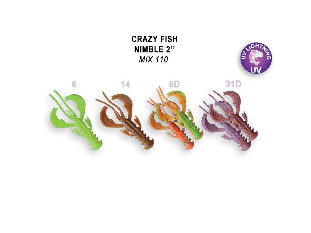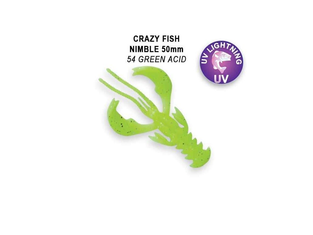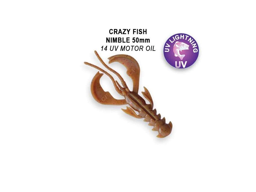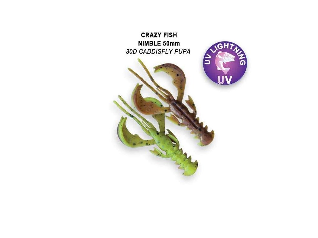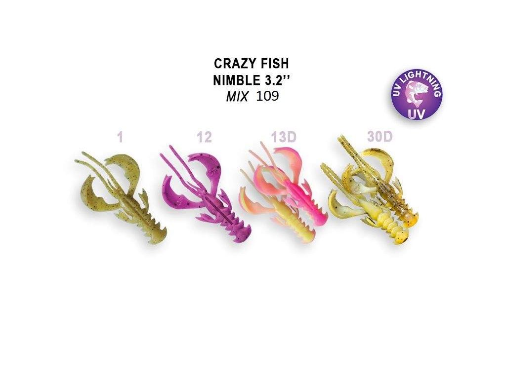 Nimble - další z řady úspěšných floating plovoucích nástrah. Universální nástraha na lov především dravých ryb. Napodobuje raka což je přirozená potrava všech ryb. Tentokrát v plovoucí formě to ocení především lovci používající systém s čeburaškou. Nimble je z velmi měkké, dobře pracující gumy, je dipovaný a v UV barvách. Počet kusů v balení 8Doplňkové parametry