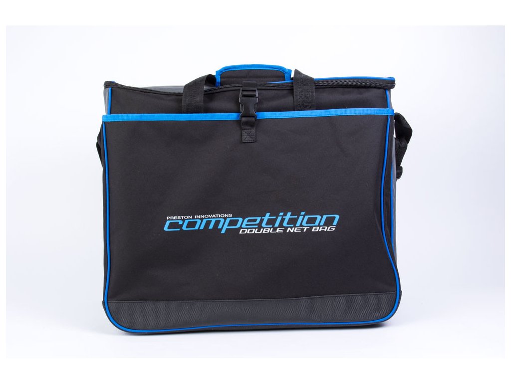 Competition Double Net Bag má vystužené švy, které dělají tuto tašku plně nepromokavou. Vnitřní kapsa je dělaná pro dva vezírky spolu s několika podběrákovými hlavami. Praktická je i další přední kapsa, například pro příslušenství k bedně či křeslu.