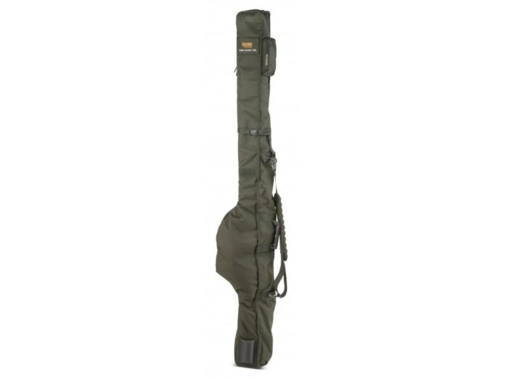 Anaconda Triple Jacket je praktické pouzdro na pruty navržené pro přepravu až tří prutů s namontovaným navijákem. Díky zpracování z voduodpudivého 600D polyesteru poskytuje spolehlivou ochranu výbavy při transportu i běžném používání u vody. Součástí pouzdra jsou také samostatné boční kapsy na podběrák, vidličky i olova, které usnadňují přehledné uložení dalšího příslušenství. Nechybí ani nastavitelný ramenní popruh pro pohodlnější nošení a průhledné okénko pro jmenovku. Pouzdro je určeno pro pruty o délce 10, 12 a 13 ft.