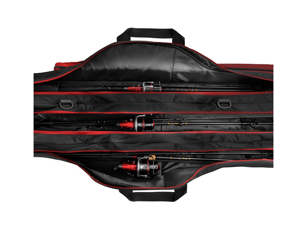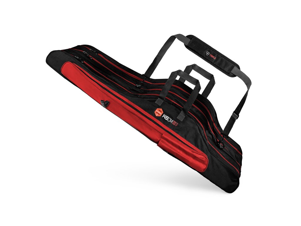 Do detailů propracované tříkomorové pouzdro z dílny firmy Delphin, které splní požadavky i náročných příznivců lovu feederovou technikou. Je designované v typické bordovo-černé kombinaci charakteristické pro feederové produkty ze série ATOMA. Boční a spodní stěny pouzdra jsou důkladně polstrované, což zaručuje transport bez obavy o vaše pruty. Každá komora má zvláštní zipovatelný vstup, díky čemuž jsou pruty od sebe odděleny a excelentně chráněny před poškozením. V každé jedné komoře se nacházejí také polstrované kapsy pro uložení prutů, které je navíc možné dokonale zafixovat páskami se suchým zipem. Takto uložené a fixované pruty najdete po transportu vždy na svém místě. Výhoda pouzdra ATOMA spočívá také v tom, že se do něj vkládají pruty s navijáky orientovanými směrem nahoru. Hlavní deviza takového systému spočívá v tom, že nedochází při položení pouzdra na zem k přímému kontaktu navijáků se zemí. Tím pádem jsou lépe chráněny a je minimalizována šance jejich poškození. Po bocích se nacházejí dvě kapsy se zipem. Jedna z nich je extra dlouhá a je možné do ní uložit například podběrákovou tyč, vidličky, či různé feederové držáky prutů a ramena. Z vnější strany je navíc na ní našitá kapsa a stahovací popruh, díky kterému můžete přenášet například další prut, případně vidličky a jiné příslušenství. Na druhé straně pouzdra se nachází menší zipovatelná kapsa, která je ideální na tubus s feederovými špičkami. Pouzdro je šité z velmi odolné a pevné textilie, která zamezuje předčasnému opotřebení a znehodnocení. Vínové části jsou zase z nepromokavé, kvalitní látky, díky které se nemusíte obávat ani menšího deště. Delphin ATOMA disponuje délkově nastavitelným ramenním popruhem s vyztuženou částí, ale také rukojeťmi, usnadňujícími transport. Spolu s kvalitními zipy s běžcem, zajímavým designem a detailním zpracováním je toto pouzdro nejen velmi efektní, ale i vysoce praktické. Technické parametry: Model: Puzdro Delphin ATOMA Triple 360-3 Vnější délka pouzdra: 132 cm Délka boční kapsy: 110 cm Délka kapsy na špičky: 66cm Pro pruty: 360cm / 3 díly Model: Puzdro Delphin ATOMA Triple 390-3 Vnější délka pouzdra: 147 cm Délka boční kapsy: 110 cm Délka kapsy na špičky: 66cm Pro pruty: 390cm / 3 díly, 400cm / 3 dílyDoplňkové parametry
