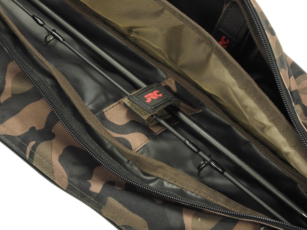 Pouzdro na pruty Rova Camo 2 Rod Sleeve Short poskytuje skvělou ochranu pro dva pruty a dva navijáky. Na boku pouzdra se nacházejí dvě dlouhé kapsy, do kterých se vejdou až čtyři vidličky se signalizátory nebo podběrák s plovoucím nebo vážícím sakem.