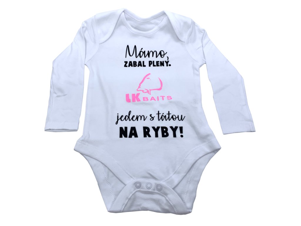 Oblečení máme nově i pro nejmenší rybáře a fanoušky LK baits. Kojenecké body s dlouhým rukávem je vyrobené ze 100 % bavlny s nápisem Mámo zabal pleny - jedem s tátou na ryby. Zajistí miminku maximální pohodlí i při celodenním nošení. Body má praktické zapínání na patentky mezi nožičkami pro snazší oblékání a přebalování. 100% Bavlna Prát vždy naruby, maximálně na 30°. Žehlit naruby, nežehlete přímo přes potisk, došlo by k poškození. Nepoužívejte žádná bělidla ani aviváž. Nepoužívejte sušičku na prádlo Velikost Věk dítěte Výška v cm 50 0-1 měsíc do 50 56 1-2 měsíce 51 – 56 62 2-3 měsíce 57 – 62 68 4-6 měsíců 63 – 68 74 6-9 měsíců 69 – 74 80 9-12 měsíců 75 – 80 86 12-18 měsíců 81 – 86 92 18-24 měsíců 87 – 92 98 2-3 roky 93 – 98Doplňkové parametry