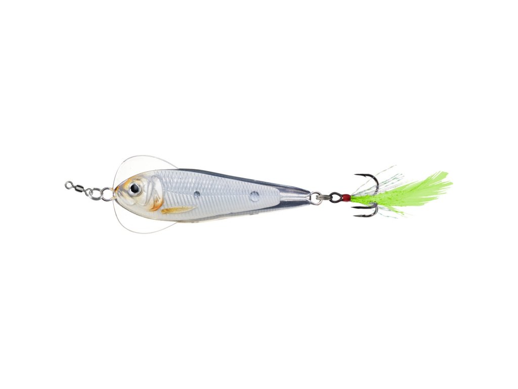 LIVETARGET Flutter Shad Jigging Spoon s háčkem a hvostovým perem přichází v těch nejrealističtějších barvách, jaké byly kdy vyvinuty pro plandavky.