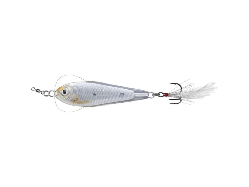 LIVETARGET Flutter Shad Jigging Spoon lze nastražit technikou zvedání a spouštění a lze ji spustit na spodek koryta a kývat, aby se vytvořilo nepravidelné trhnutí, které vytváří agresivní výpady.