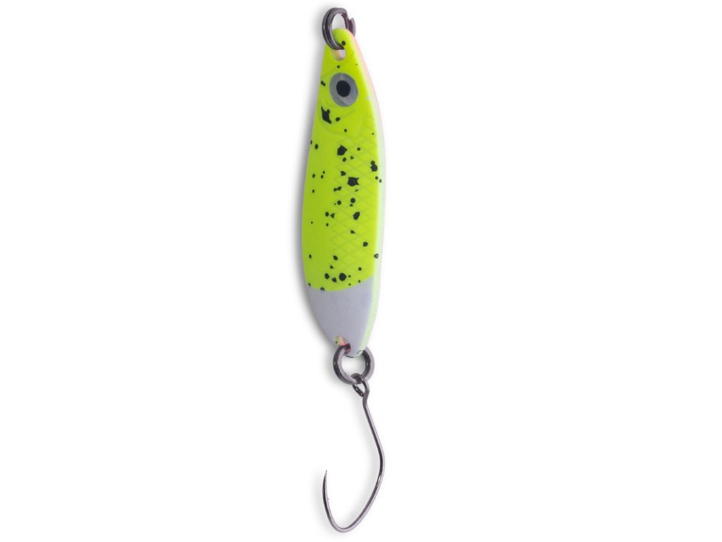 Třpytky Iron Trout Eye Spoon 2,5 g byly navrženy s důrazem na optimální pohyb ve vodě a lákavý vizuální efekt. Jsou ideální volbou pro lov pstruhů v různých podmínkách.
