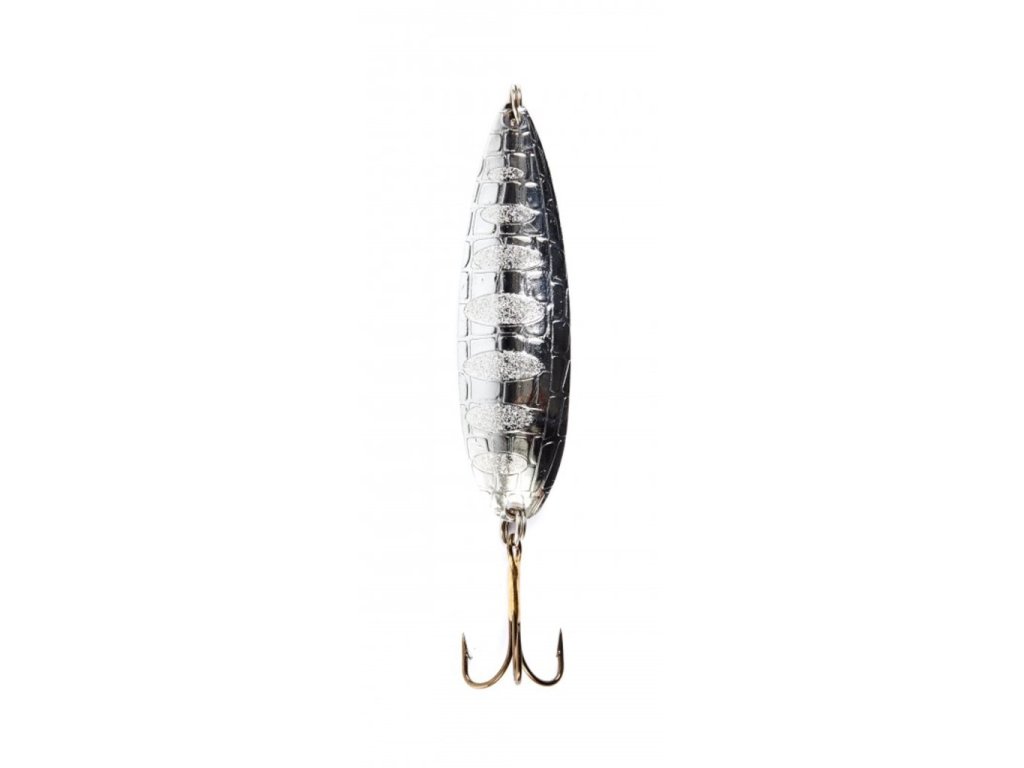 Lucky John Croco Spoon – úzká třpytka s zakřiveným profilem ocasní části. Třpytka výborně létá při náhozu a při vedení má výraznou akci. Vnější strana nástrahy je vyrobena jako reliéfní povrch se vzorem, který přitahuje dravé ryby z velké vzdálenosti. Třpytky CROCO SPOON jsou v nabídce ve čtyřech velikostech a liší se tloušťkou těla. Jejich hmotnost je: 14, 18, 22 a 26 gramů. Délka a tloušťka kovu použitého v nástraze umožňují použití třpytek v různých podmínkách přívlačového rybolovu. Lehčí nástrahy jsou účinnější při lovu v mělké vodě a v blízkosti porostů vodní vegetace. Těžší třpytka výborně pracuje u dna, v hloubkách 3–5 m. Se třpytkami CROCO SPOON se dobře kombinuje jakýkoli způsob vedení: rovnoměrné, přerušované i stupňovité. Nejlehčí třpytka o hmotnosti 14 gramů se úspěšně používá také v zimě při lovu candáta na ledu. Délka: 77 mmDoplňkové parametry
