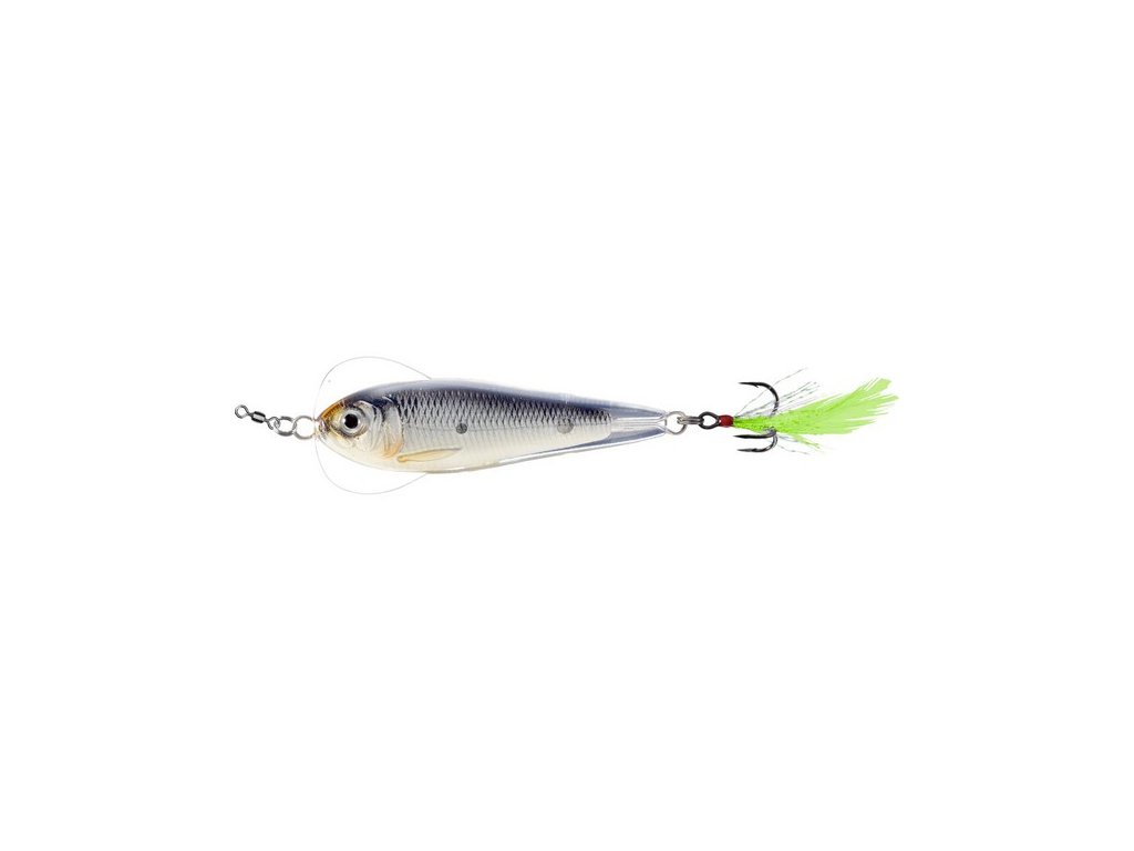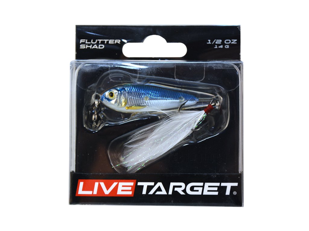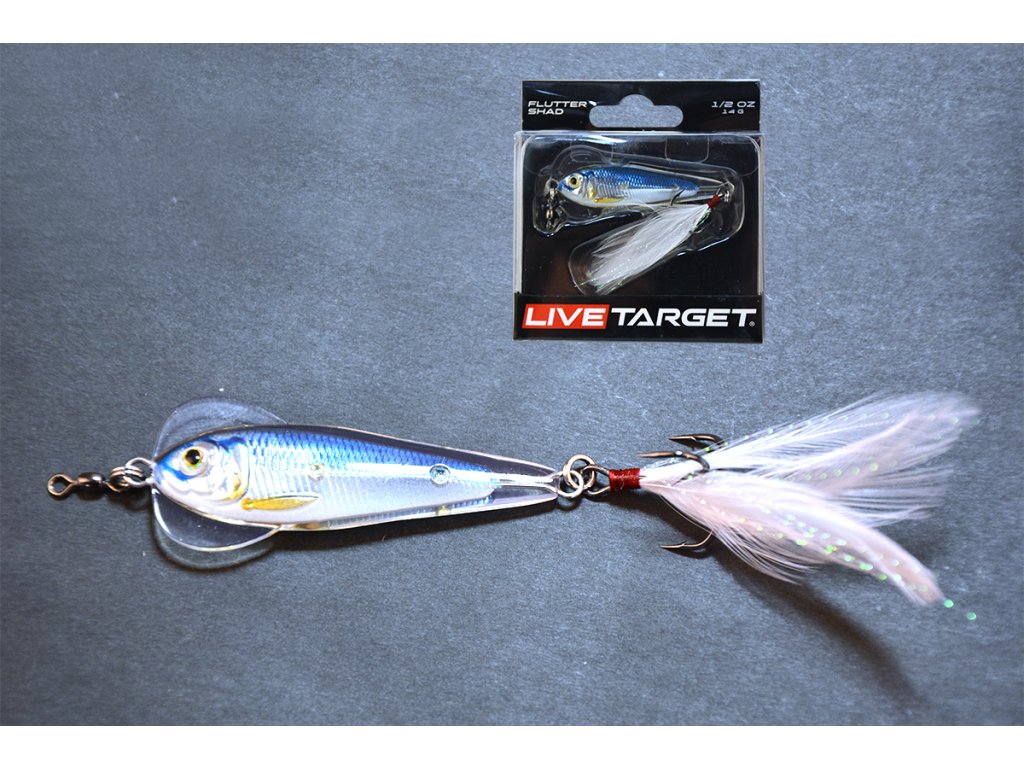 LIVETARGET Flutter Shad Jigging Spoon s háčkem a hvostovým perem přichází v těch nejrealističtějších barvách, jaké byly kdy vyvinuty pro plandavky.