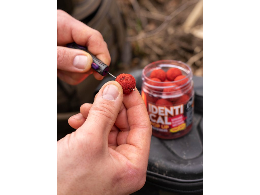 IDENTICAL Pop-Up navíc obsahují dvojitou dávku esencí, pro maximální atraktivitu a ještě se navíc obalují do suché barvící atraktivní směsi, která obsahuje také například rybí moučky a extrakty. Celý proces dipování a finální podoby trvá několik dnů.