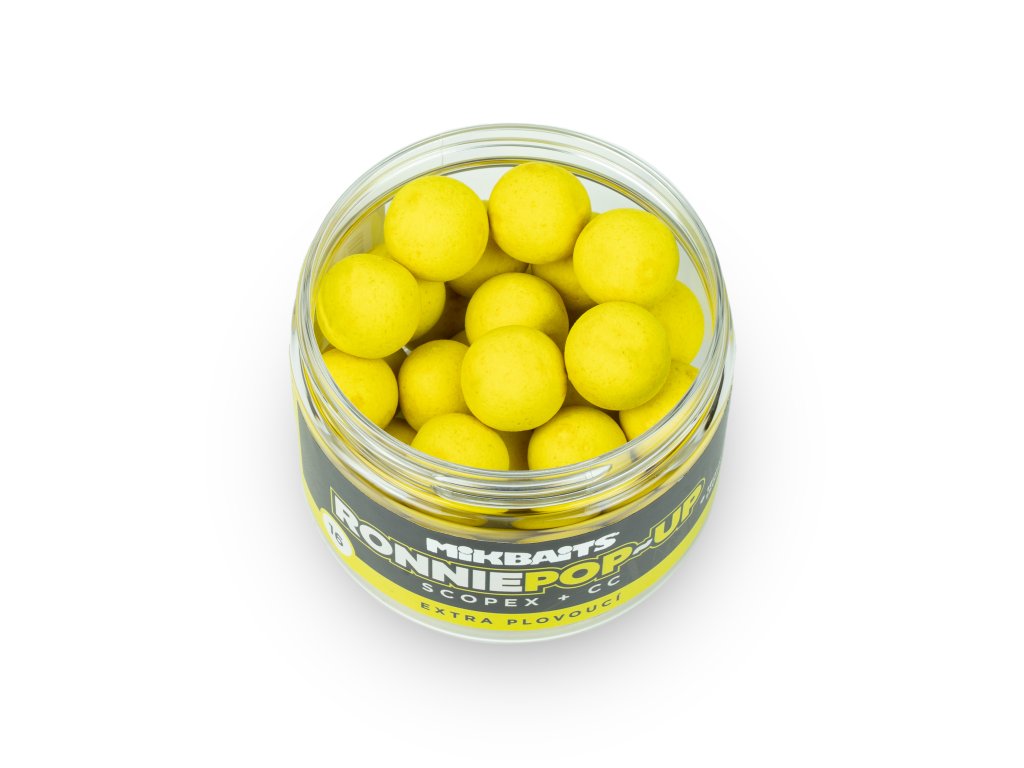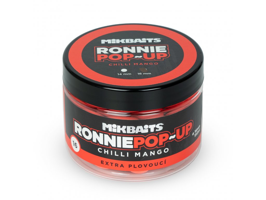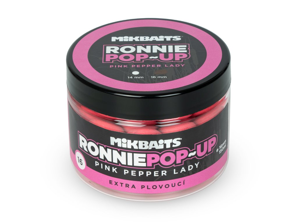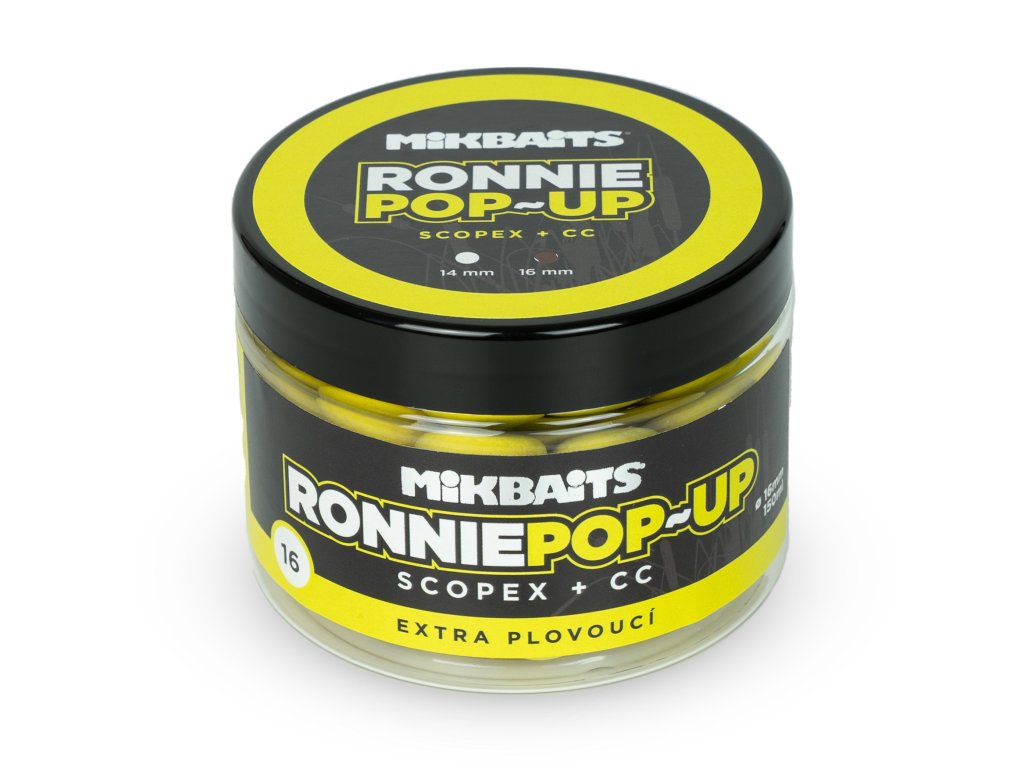 Ronnie pop-up jsou extra plovoucí fluo boilie vyráběné ze speciální směsi. Jsou nesmírně atraktivní, vysoce viditelné a především, dlouho a zcela nadstandardně plavou. To jim umožňuje nasadit je i na Zig rig nebo právě Ronnie rig, kde mnoho běžných pop-up selhává. Můžete je samozřejmě použít i na standardní nastražení pop-up nebo na panáčka v kombinaci s potápivým boilie.Doplňkové parametry