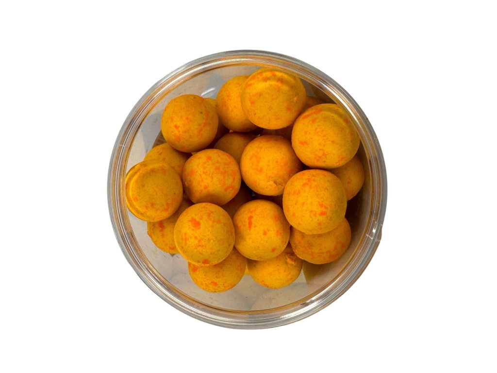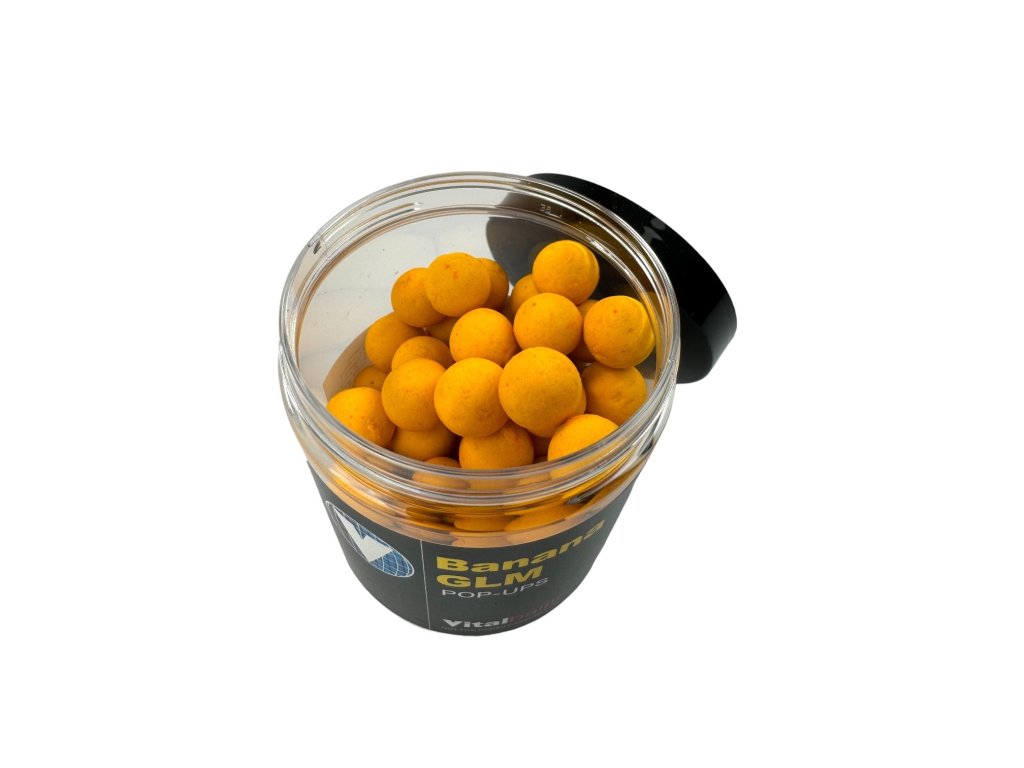Unikátní pop-upy doplňující řadu Banana GLM boilie. Jejich barva v kelímku je poměrně tmavá. Jakmile je ale ponoříte do vody, velice rychle začnou působit a změní svou barvu na svítivě žlutou. Tím se stanou pro kapry více rozpoznatelnými a o to lákavějšími. Směsi pro Pop-Up obsahují stejné atraktanty jako krmení stejné řady, ale v ještě větší míře. Vydrží plavat a uvolňovat neodolatelné aroma déle než 48 hodin.Doplňkové parametry
