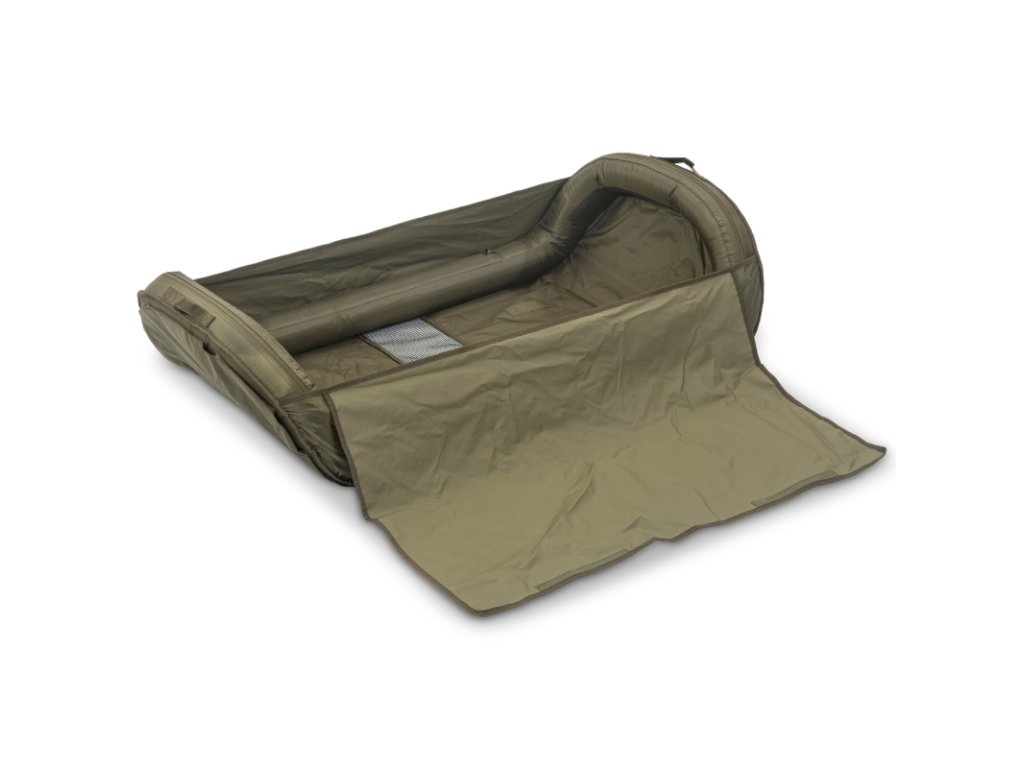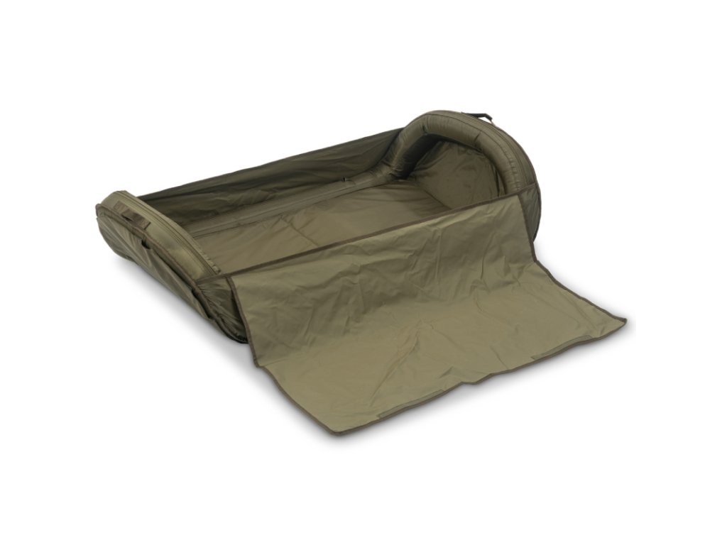 Podložka má odtok z pogumované síťoviny a uvnitř také vyjímatelnou, extra polstrovanou vložku, která zvyšuje komfort i bezpečnost ryby. Krycí plachta se suchými zipy zabraňuje nechtěnému vyskočení kapra při manipulaci. Boční otevírání na suchý zip zleva i zprava usnadňuje práci a robustní madla umožňují bezpečné přenášení. Díky kompaktním transportním rozměrům 50 × 50 × 10 cm ji snadno vezmeš kamkoli. Součástí balení je pumpa a transportní taška.