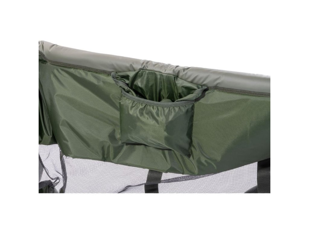 Kromě toho má tato podložka pevně šité víko s gumovým popruhem na boku, výškově nastavitelné nohy a extra zesílenou bezpečnostní konstrukci, která zaručuje 100% stabilitu, i při měření těžkých ryb.