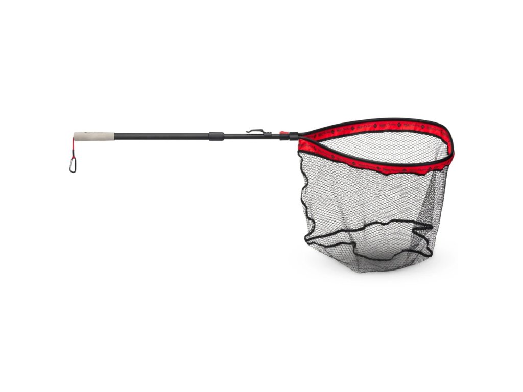 Iron Claw Adjustable Speed Rubber Scoop Small v delším provedení nabízí větší dosah při podebírání z vyššího břehu nebo z belly boatu, přitom zůstává skladný díky výklopné hlavě a zasouvací rukojeti. Měkká gumovaná síťka s oky 10 mm je šetrná k rybám, nepoškozuje slizový film a zároveň omezuje zamotání háčků při manipulaci. Praktický boční klip usnadňuje nošení podběráku zavěšeného na prsačkách či opasku, takže je ihned po ruce. Na rukojeti je integrované měřicí pásmo pro rychlé přeměření úlovku. Součástí balení je transportní karabina s nylonovou šňůrou pro bezpečné připevnění při přesunech.