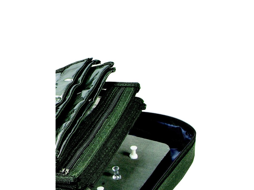 Toto pouzdro je navržené pro uložení návazců a pomůcek pro jejich tvorbu. Prostorná a pěkná taštička na návazce, která vám umožní, aby všechny vaše návazce a montáže mohly být uskladněny v oddělených PVC sáčcích. 8 PVC kapes Materiál Oxford nylon 600D Dvě pěnová tabla s připínáčky Z druhé strany plastová průhledná krabička se stavitelnými přepážkami a další kapsa na drobnosti Nastavitelný ramenní popruh, který neklouže a drží pouzdro v rovnováze Držadlo a kvalitní zip samozřejmostí Rozměry: 30 x 22 x 22 cmDoplňkové parametry