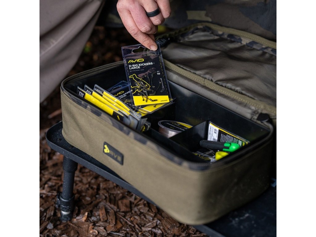 Vyrobeno z odolné voděodolné 600D Oxford tkaniny s odolnými 10 mm zipy s detaily Avid camo