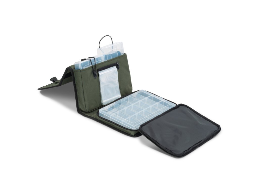 Malé, kapesní pouzdro pro uložení vybavení a materiálu pro výrobu návazců a samozřejmě také prostor pro jejich uskladnění. Součástí je také plastová krabička, do které si můžete své věci přehledně srovnat. To vám u vody ušetří spoustu času, který můžete věnovat rybaření.