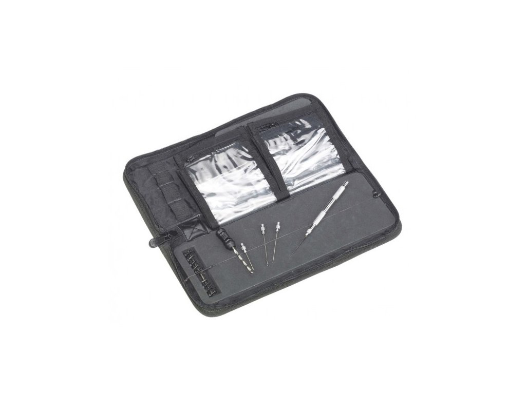 Pouzdro na dlouhé návazce. Obsahuje dvě desky z tvrdé pěny. (18 a 33cm) Součástí je 8 průhledných kapes na drobný materiál potřebný při výrobě návazců.- 1 pěnová deska o délce: 33 cm