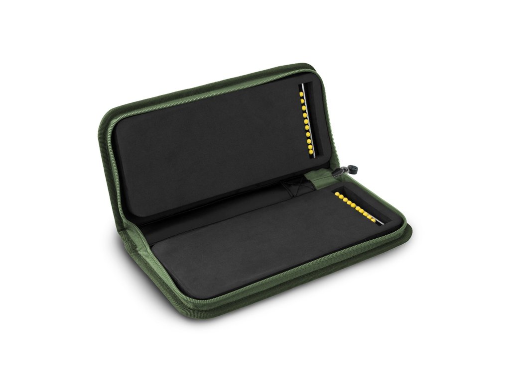 Delphin SPACE je označení pro exkluzivní sérii tašek z dílny značky Delphin. Vyznačuje se špičkovým zpracováním, kvalitními zipy, ale zejména výjimečným designem s použitím C2G kamufláže. Delphin Rig SPACE slouží k uložení kaprařských i jiných návazců. Pouzdro je jednoduché konstrukce, avšak již dílenské vypracování svědčí o jeho kvalitě a životnosti. Z vnější strany je pouzdro zcela vyztuženo a potaženo odolným materiálem. Uvnitř se nachází vrstva PVC, na které je upevněn tvrzený molitan. Také se zde nachází 20 kusů špendlíků s kulatými hlavičkami, díky čemuž je jejich zatlačování velmi pohodlné. Kombinace vnějšího materiálu s vnitřní vrstvou PVC zajistí, že vaše návazce budou vždy dokonale chráněny a připraveny k okamžitému použití. Pouzdro je osazeno zipem s kovovým běžcem, na kterém je stylový držák s logem Delphin. Technické parametry: Rozměry: 30x14x4cm Kapacita pouzdra: 20 ks návazců o max. délce cca 24,5cm Stylová patentovaná kamufláž z dílny značky Delphin pod označením C2G má mnoho podob a úhlů pohledu. Přesně tak i její název, který můžeme volně přeložit jako Carpath 2. generace, což přímo odkazuje na jejího předchůdce, ale můžeme ho číst i jako Carpath to Green, tedy přechod myšlenky Carpathu do zelené barvy. Její jedinečnost a nezaměnitelnost spočívá v prvcích, ze kterých je vytvořena. Na první dojem jde o kamufláž tvořenou třemi různými odstíny zelené. Všechno se však změní při detailnějším pohledu, kdy si všimnete siluety kaprů, komponent kaprařské montáže a log značky Delphin spolu s označením C2G. Díky tomuto neopakovatelnému provedení se vaše rybářská výbava okamžitě stane jedinečnou a maximálně originální.Doplňkové parametry