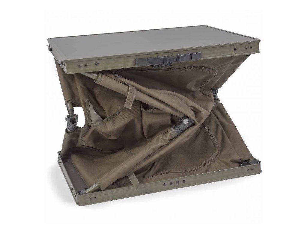 Organizér je rychlo postavitelný, je tvořen lehkým hliníkovým rámem, pevnými policemi, venkovními kapsami na obou bocích, vrchní a spodní deskou a voděodolnou tkaninou Dura-Tech