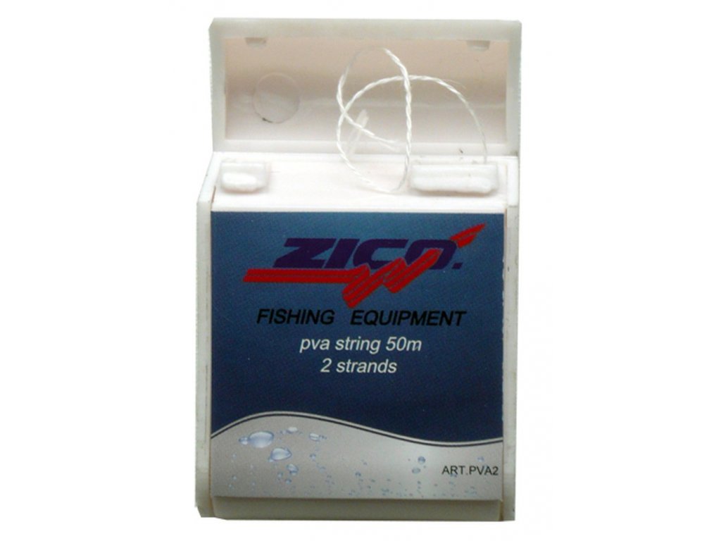 PVA (polyvinyl alkohol) - netoxický ve vodě rozpustný materiál.~Na PVA nit lze navléknout vhodnou návnadu, např boillies nebo pelety. Šnůrku s návnadou připevníte k montáži. Po dopadu do vody se šnůrka rozpustí a vaše návnada je rozmístěna v bezprostření blízkosti háčku s nástrahou.~Recenze: http://www.zico-fishing.cz/?p=2963 a http://www.zico-fishing.cz/?p=2710Doplňkové parametry