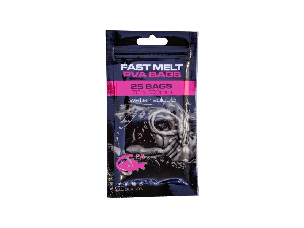 Společnost PVA Hydrospol Vám přináší kompletní řadu PVA sáčků hned ve třech rozdílných rozměrech. Rozměr 70 x 100 mm je z naší rodiny sáčků ten nejmenší a zároveň nejvhodnější pro daleké hody. Kdo nás trochu zná, tak ví, že právě naši firmu jsme vybudovali na PVA sáčcích. Jsme rádi, že je opět zařazujeme do našeho portfolia. Tentokrát jsme nad sáčky přemýšleli malinko jinak, než tomu bylo v minulosti. Prioritou bylo u sáčků zvolit podélné sváry po bocích, což je umožňuje opravdu pořádně napěchovat. Nemusíte tak bát protržení spodní části při plnění nebo utahování rožků sáčku. Zvolili jsme kvalitní japonskou PVA fólii, která není perforovaná. Díky tomu je práce sáčkem mnohem příjemnější. PVA sáčky jsou skvělou volbou k odprezentování nástrahy v lovném místě. Rybář je může naplnit opravdu čímkoliv včetně tekutých složek a docílit efektu, který je s punčochou nemožný. Všechny naše sáčky jsou zabalené do praktického zip saku. Balení obsahuje 25 sáčků a originální lopatku PVA Hydrospol pro pohodlné plnění.